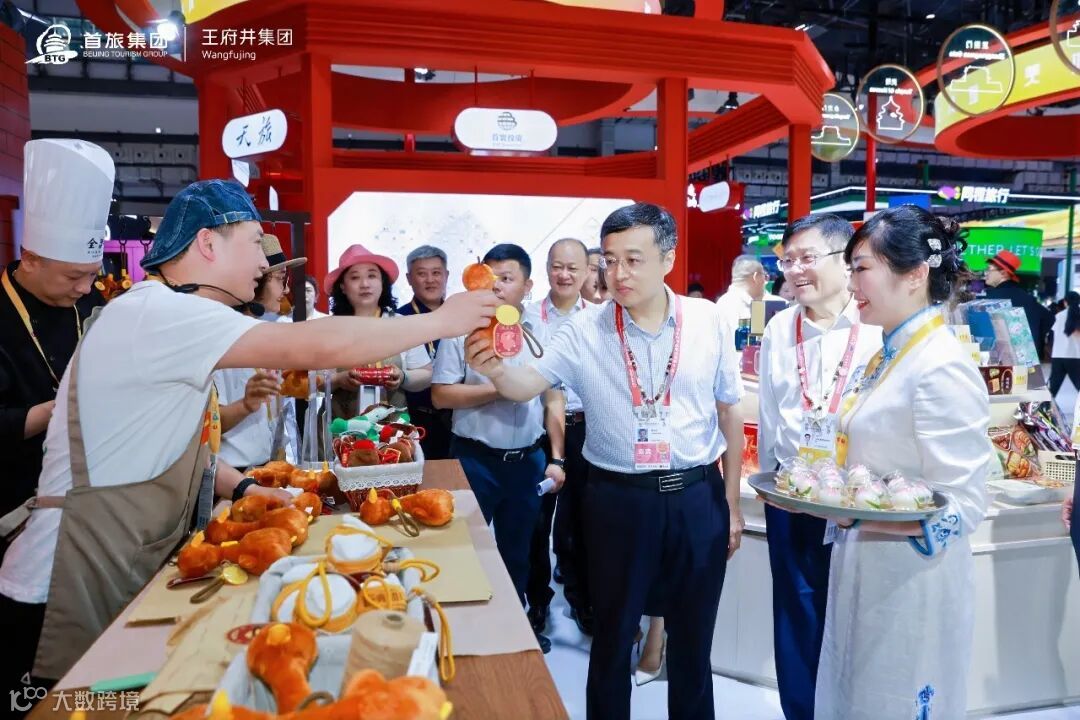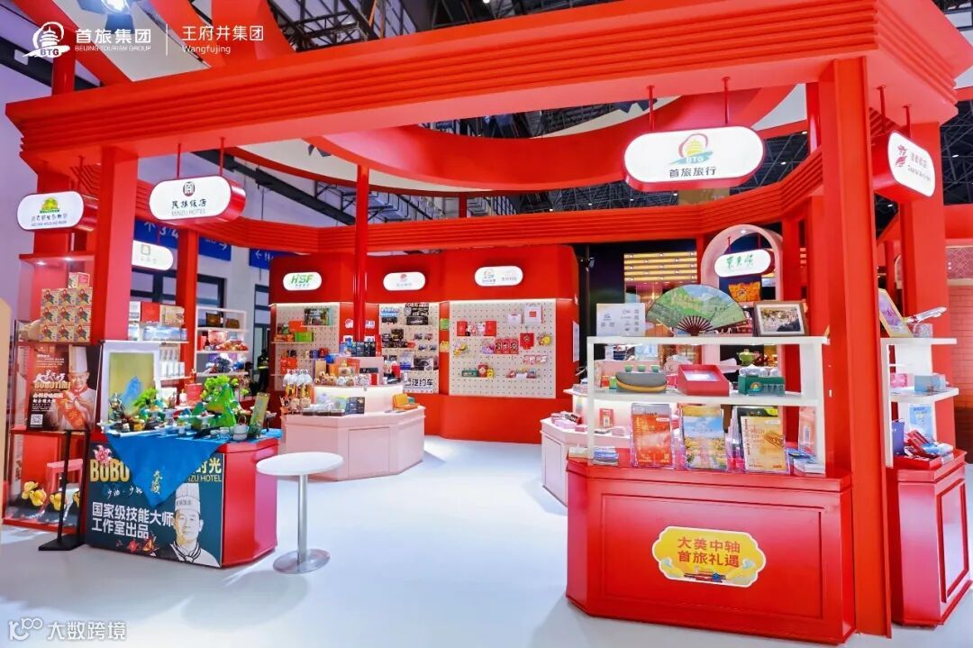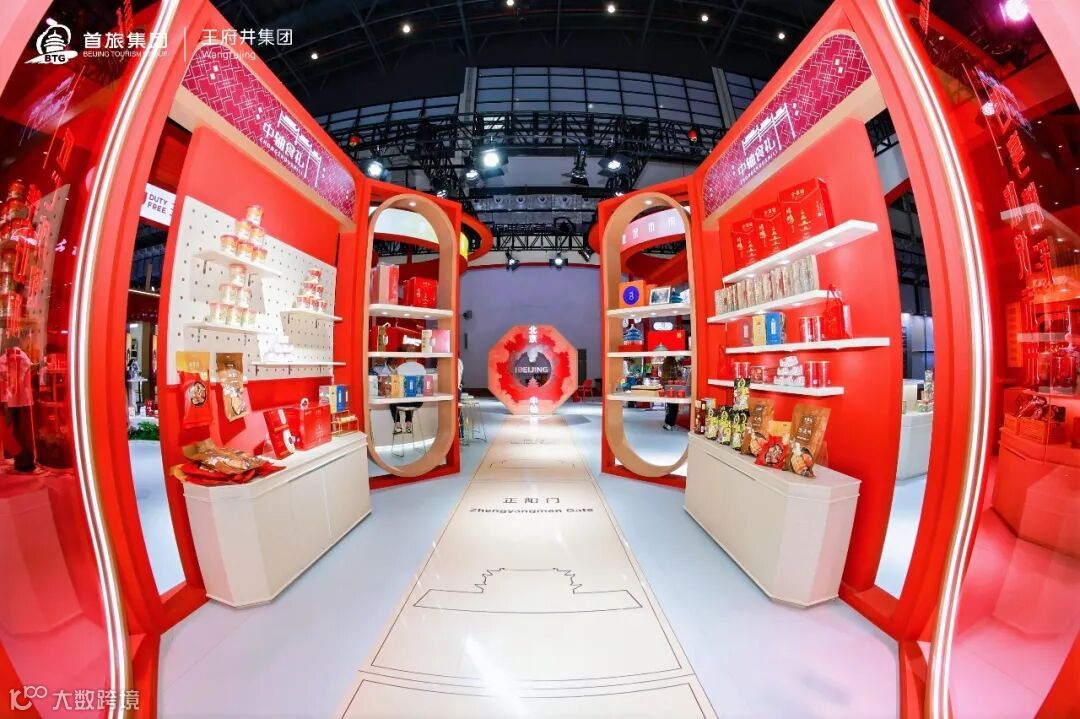 "全球免税臻选"区域集中呈现离岛免税、机场免税等业务,汇聚雅诗兰黛、兰蔻等近50个品牌超183个商品,现场提供即买即提服务,同步推进国产品退税合作签约;"首旅生活街区"整合全聚德、东来顺等13家企业资源,构建美食、出行、文旅融合的沉浸式场景;"中轴文化体验"展区以北京中轴线建筑元素打造天地一体化视觉体系,融合非遗老字号与文创产品,展现文化赋能消费的创新实践。
