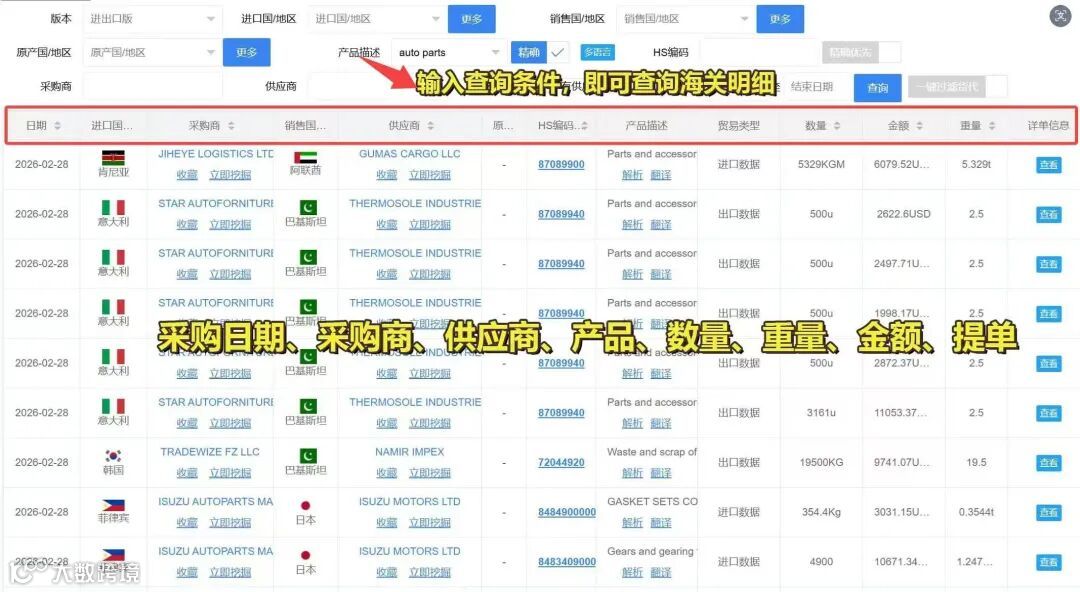 海关数据自带一键深挖功能,