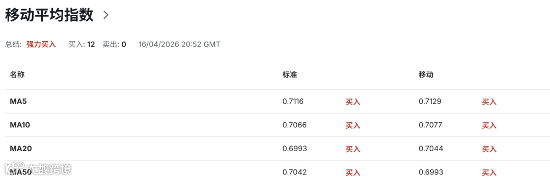 总体而言,澳币兑美元在快速冲高后进入技术性休整阶段,布林带收窄与RSI回落均指向短期缺乏单边突破的动力。0.7140中轨与0.7100关口将成为未来几个交易日的关键观察区域,守住则震荡偏强格局延续,失守则需警惕更深幅度的回撤。
