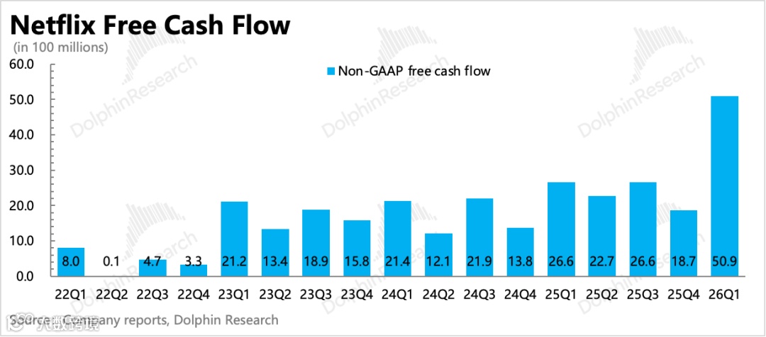 放弃收购WBD后,奈飞恢复股票回购,一季度斥资13亿美元,剩余额度68亿美元。按季度20-25亿美元节奏执行,全年股东回报率约2%。获28亿美元收购违约金后,上调自由现金流目标至125亿美元,账面净现金达112亿美元,但全年近200亿美元内容预算可能压制利润率改善空间。