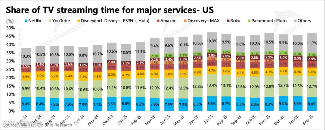 放弃WBD收购使奈飞在内容投入与新业务扩展上更具灵活性,符合当前资金对盈利能力和现金流稳定性的偏好。短期运营逻辑清晰(收入靠提价+广告,盈利靠降本增效),避免了收购带来的中期不确定性。自2月底以来股价累计上涨26%,显著跑赢大盘。