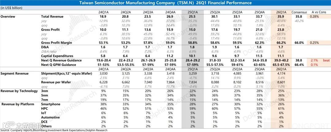 毛利率展望:Q1毛利率66.2%超预期,受益于产能利用率及成本优化;Q2指引中值66.5%,环比升0.3个百分点。下半年2nm爬坡及海外工厂将稀释毛利率2%-3%;N3节点毛利率下半年将超公司均值。