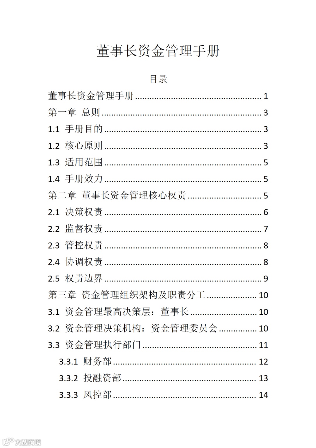 资金是企业生存发展的核心资源。董事长作为最高决策人,须全面负责资金安全、配置及效益管控。本手册明确其核心权责与决策流程,规范企业资金全链条管理,保障经营活动与战略发展的资金需求。