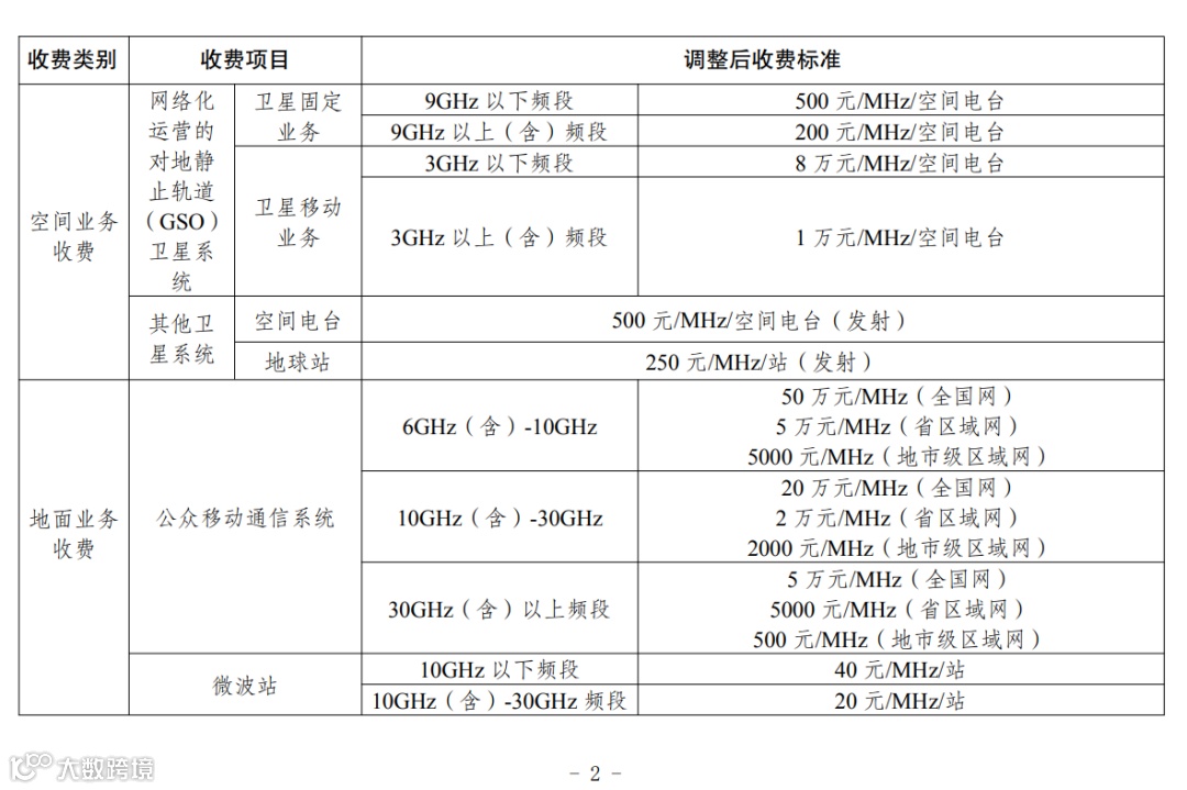 二、降低高频段收费标准。对NGSO卫星星座系统、网络化运营的GSO卫星系统、微波站、宽带无线接入系统,按照频率高低细化收费分档,部分高频段频率实行更低的收费标准。