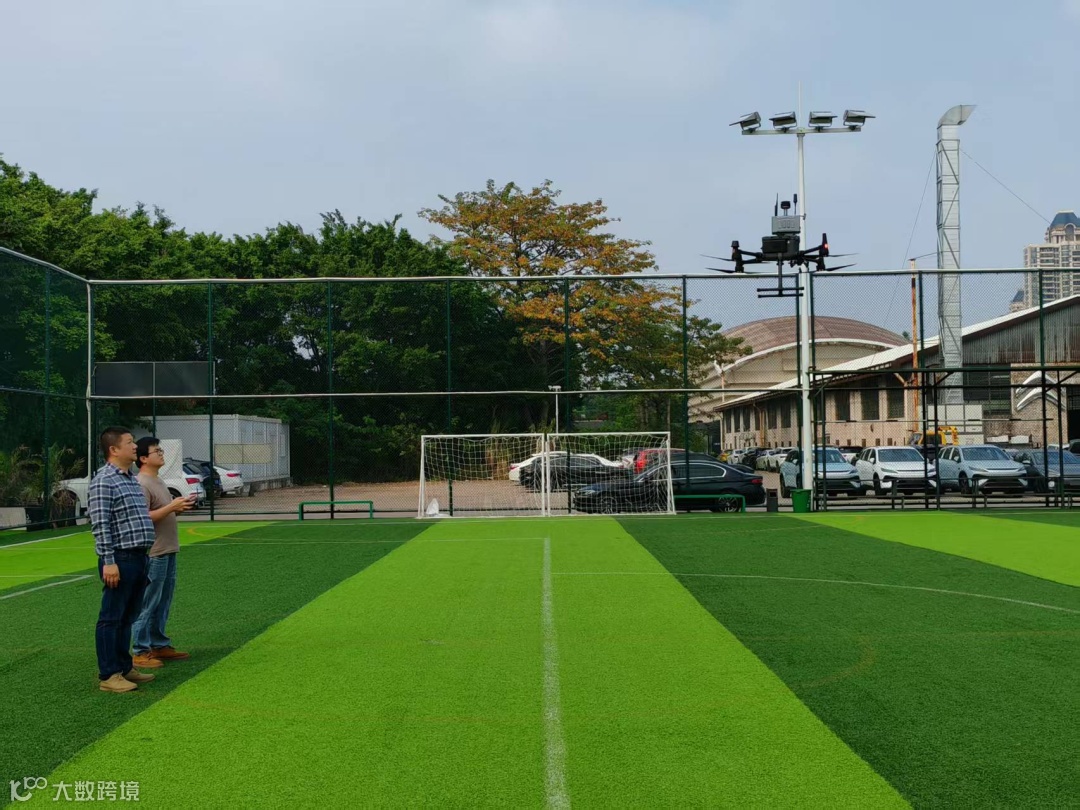 2025年12月22日,技术人员在海珠区南洲街道沥滘振兴大街足球公园操控无人机开展低空作业测试。