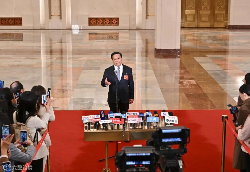 3月9日上午,十四届全国人大四次会议第二场“部长通道”集中采访活动在人民大会堂北大厅举行,农业农村部部长韩俊接受记者采访。