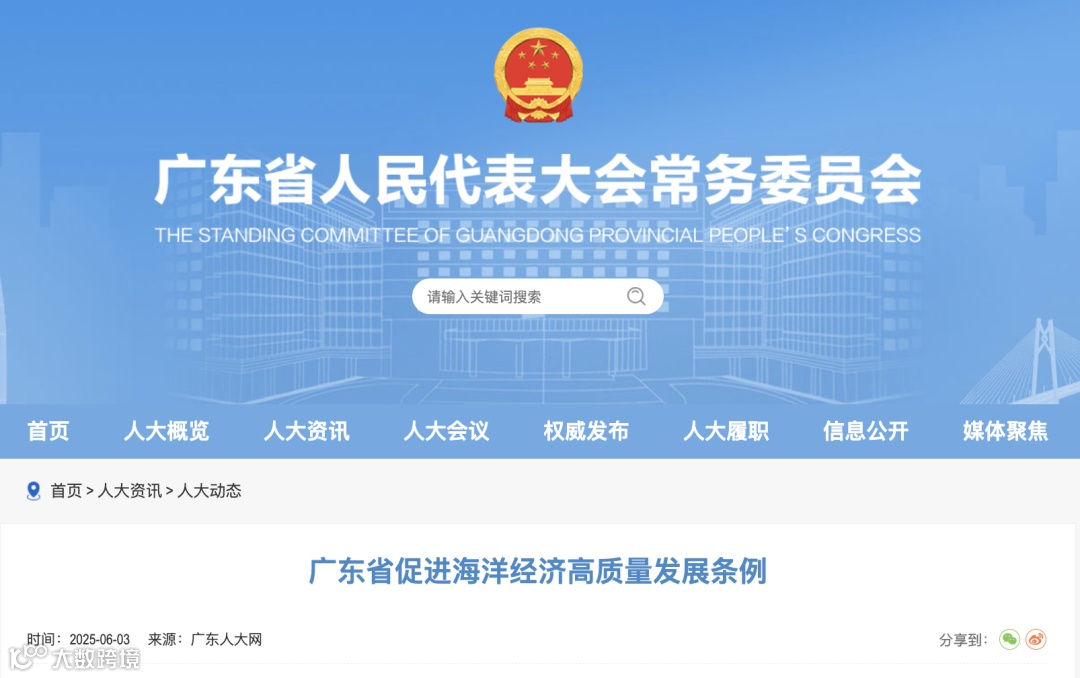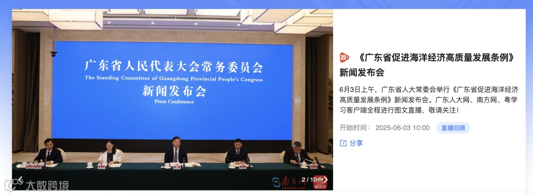 同日,广东省人大常委会举行《广东省促进海洋经济高质量发展条例》新闻发布会。会上介绍,2024年广东省海洋生产总值达20022.5亿元,占地区生产总值的14.1%、全国海洋生产总值的18.9%,海洋经济总量连续30年居全国第一。