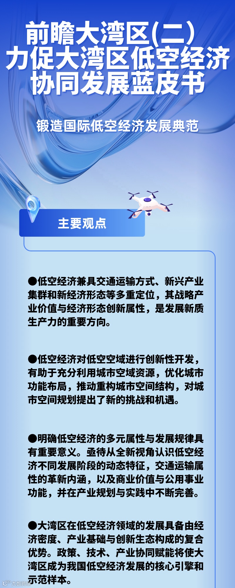 在充分认识低空经济概念和规律性的基础上,如何推动社会各界形成发展低空经济的共识,力促大湾区通过政策、技术、人才的全方位协同,使大湾区成为引领全球低空经济创新发展的高地?6月25日,《前瞻大湾区(二)力促大湾区低空经济协同发展蓝皮书》(以下简称“蓝皮书”)正式发布。