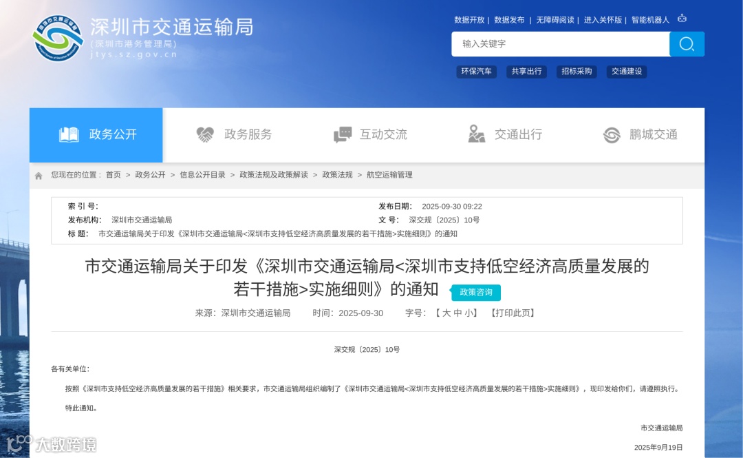 深圳市交通运输局《深圳市支持低空经济高质量发展的若干措施》实施细则