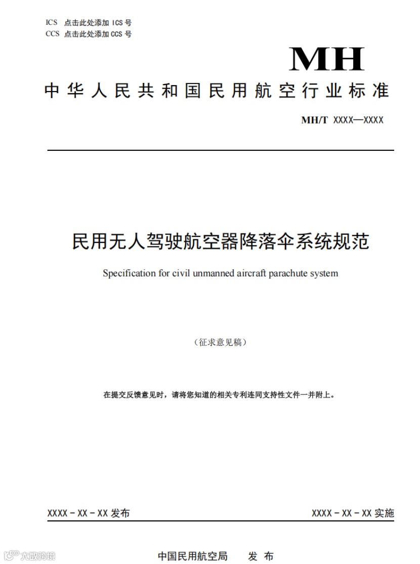 近日,民航局航空器适航审定司发布关于征求民航行业标准《民用无人驾驶航空器降落伞系统规范(征求意见稿)》意见的函。意见征集日期截至10月20日。