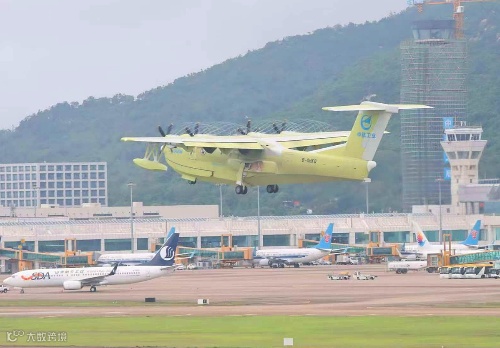 5月18日,AG600-1101架机从珠海机场起飞