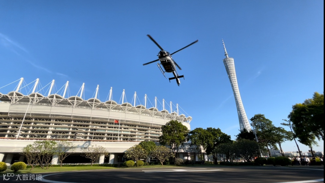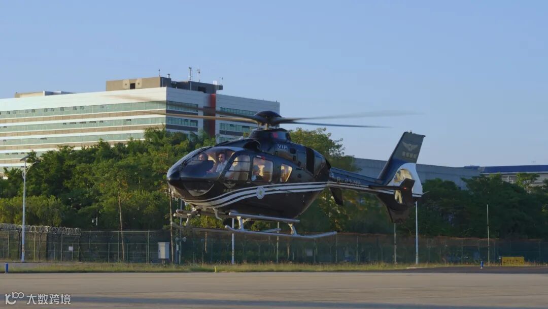 16:35,直升机从广州海心沙直升机起降点起飞,经过18分钟飞行,直升机抵达广州白云机场商务航空服务基地。