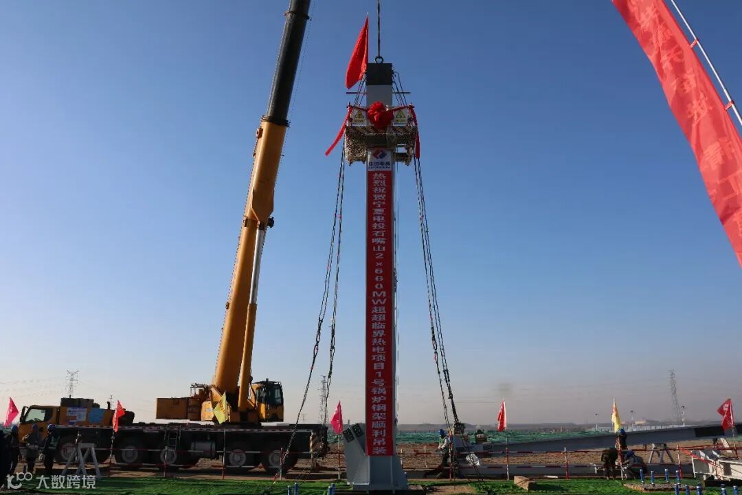 2025年12月30日10时18分,宁电投(石嘴山市)能源发展有限公司2×660MW超超临界热电项目建设现场传来振奋人心的消息——#1锅炉首根钢结构立柱在200吨汽车吊的精准吊运下,稳稳落座预定位置,吊装任务圆满完成。这一关键节点的突破,标志着项目正式迈入#1锅炉钢结构安装核心阶段,为后续工程推进奠定坚实基础,向“2027年双机组并网发电”目标迈出重要一步。