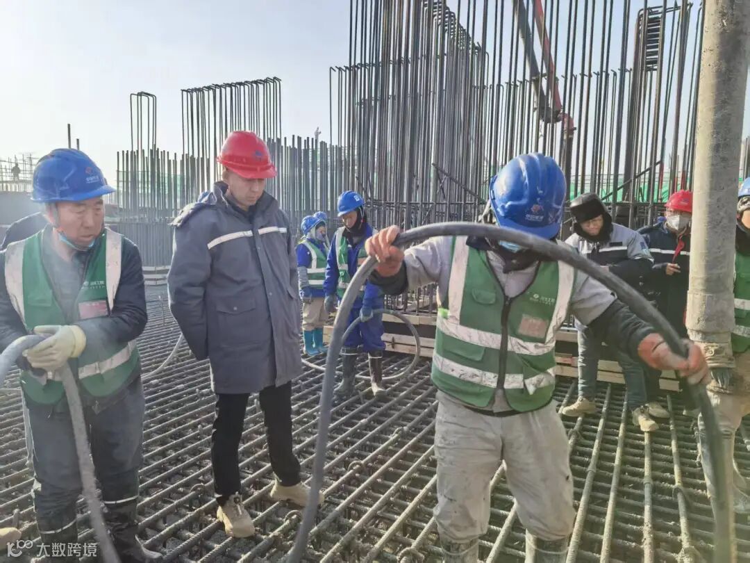 为保障浇筑任务万无一失,公司高度重视、提前谋划,严格落实“规范化、标准化、精细化”管理要求,组织专业团队开展专项方案论证与全员安全技术交底,从优质原材料筛选、混凝土配合比精准设计、温控方案科学测算,到施工设备统筹调配、人员分工定岗定责、应急预案制定演练,均建立详尽管控台账;联合多部门对模板体系牢固度、钢筋绑扎精度、预埋件安装位置等关键环节开展多轮联合验收,确保各工序符合施工标准。