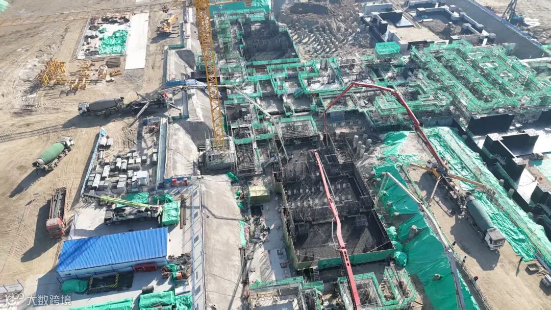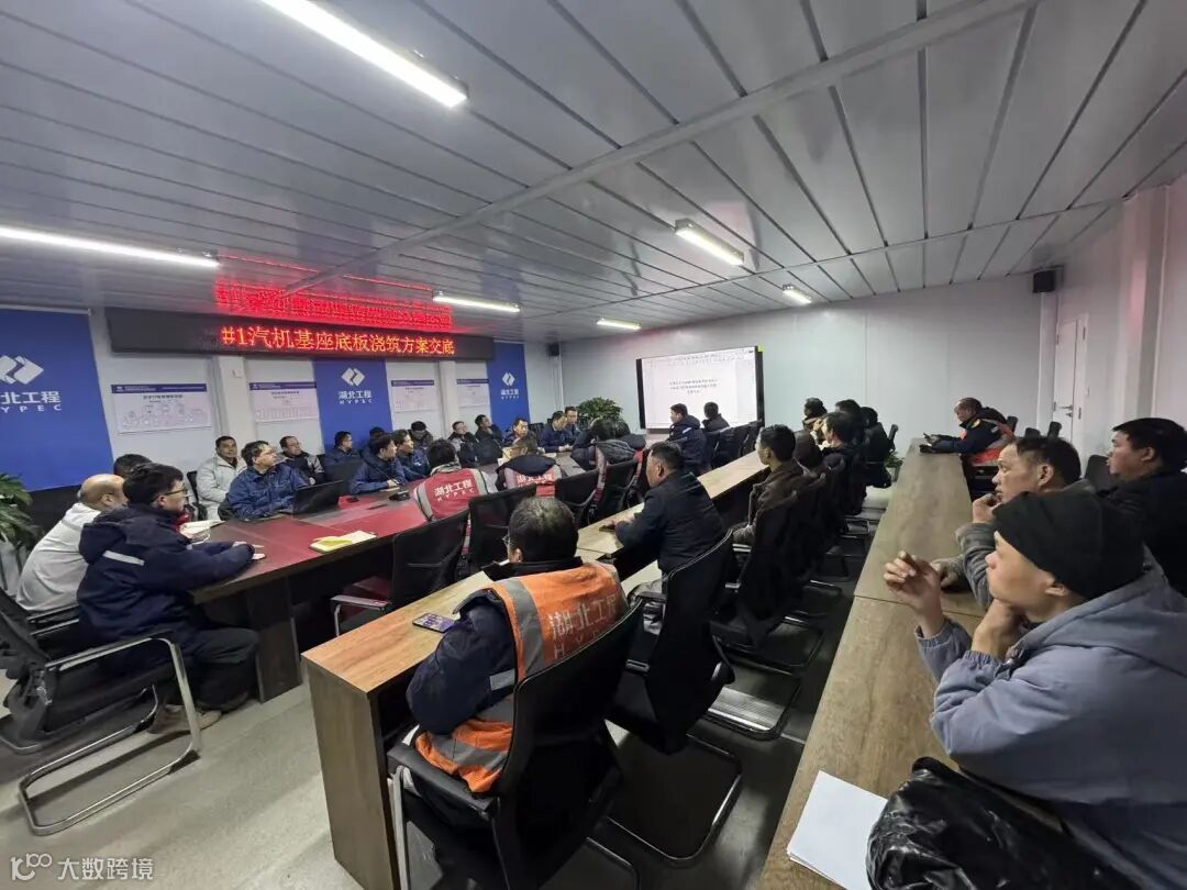 汽机基座是电厂动力核心的“承载基石”,其底板混凝土浇筑质量直接关系到未来主机的安全稳定运行。本次浇筑的底板面积达625㎡,厚度2.5m,设计混凝土总方量约1560m³,属于典型的大体积、高等级混凝土施工,兼具技术要求高、组织协调复杂、需全天候连续作业等多重挑战。