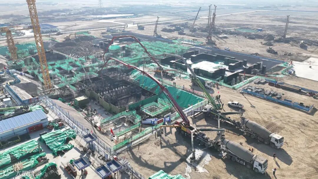2025年12月5日,宁夏电投石嘴山2×660MW超超临界热电项目建设现场一派繁忙景象,4台天泵长臂挥舞,混凝土罐车穿梭不息。随着最后一车混凝土缓缓注入模板,#1汽机基座底板大体积混凝土浇筑作业历经15小时连续奋战顺利告捷,为项目兑现年度建设目标、推进“2025年底主厂房出零米”承诺筑牢关键基础。