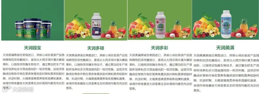 半信半疑之下,黄双发开始在网上搜索天润多彩的相关信息。这一查,让他兴奋不已。原来,天润多彩是1995年广州市政府从美国引进的高科技活性酶产品的延续发展,其独特的活性酶技术使得作物营养吸收功能大幅增强,对实现水果优质高产早熟起到了独特的优异作用,在全国高端水果产区受果农追捧程度近乎痴迷,从海南妃子笑荔枝、广东仙进奉荔枝,到江西赣南脐橙,到北方的冬枣、苹果和葡萄等等,众多种植大咖和种植专家都是其忠实粉丝,而且1996年就在砂糖桔原产地四会受到广大果农的追捧。而且他发现他所熟悉的各水果大省的农资大佬都在坚持主推这产品10-20多年不等。这让平时不大关注这一领域的黄双发陡然兴趣大增。