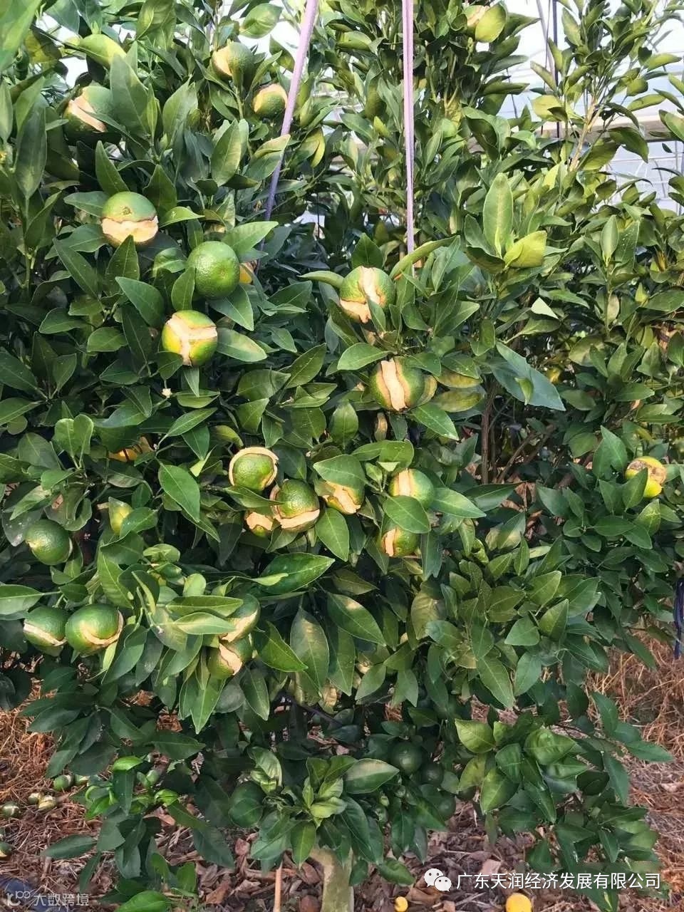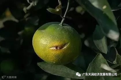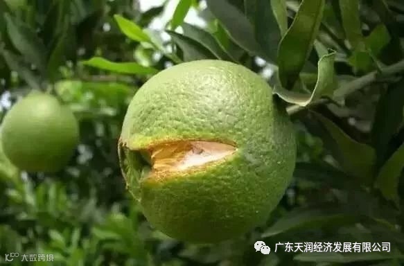 危害特征:开裂的最开始的部位为果中轴、果心或襄辨的果心侧如蜜柚,然后逐渐扩大到果实的顶部,造成裂果现象。