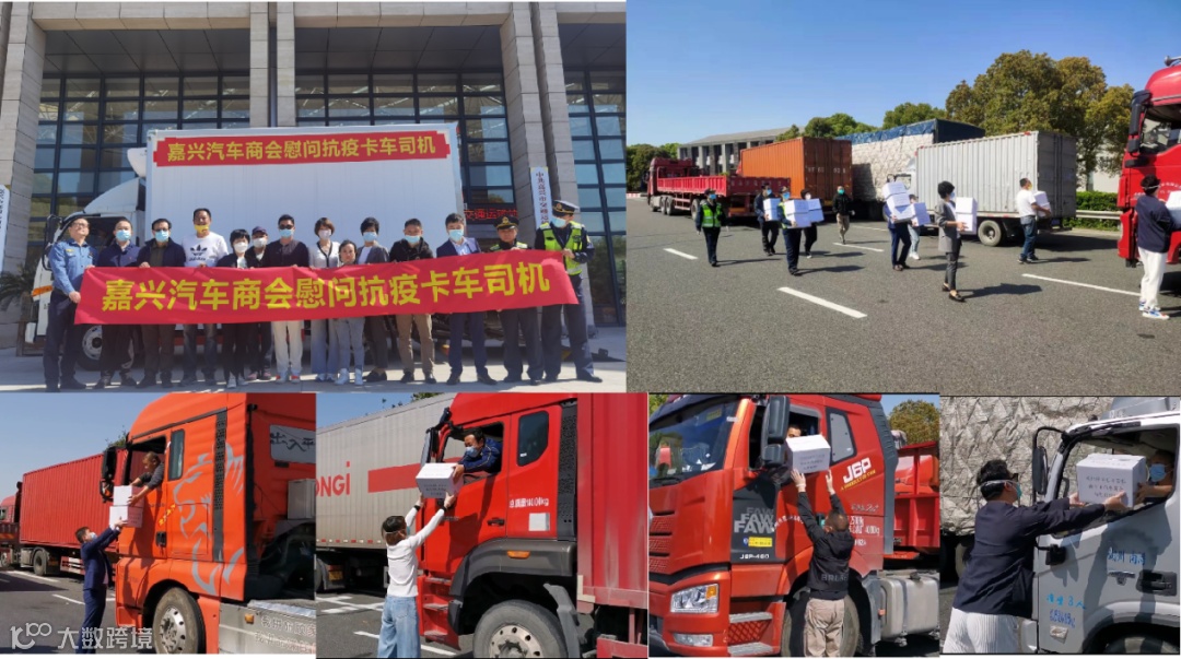 4月9日,嘉兴市汽车行业商会迅速筹集了300箱物资,与当地交通运输综合执法队一起,为被困在高速公路服务站和收费出入口检查站的卡车司机和奋战在一线的抗疫工作人员送去物资。此次行动,浙江嘉兴广信帅铃经销商组织4位工作人员及江淮帅铃冰博士冷藏车积极参与其中,为勇敢的“逆行者”——卡车司机送去急需物资,与他们守望相助,共克时艰。