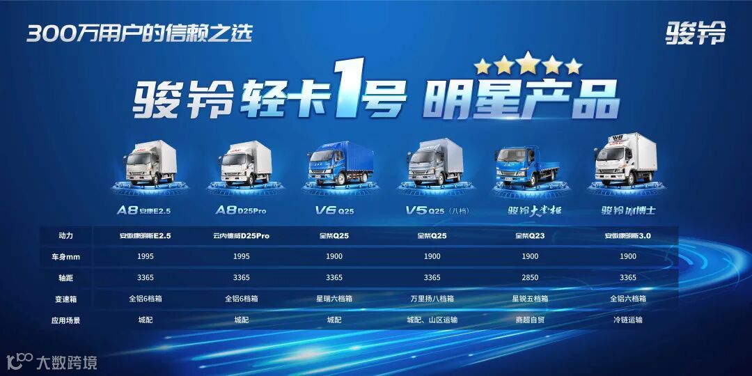 搭载全柴Q25发动机的骏铃V5(八档)、骏铃V6