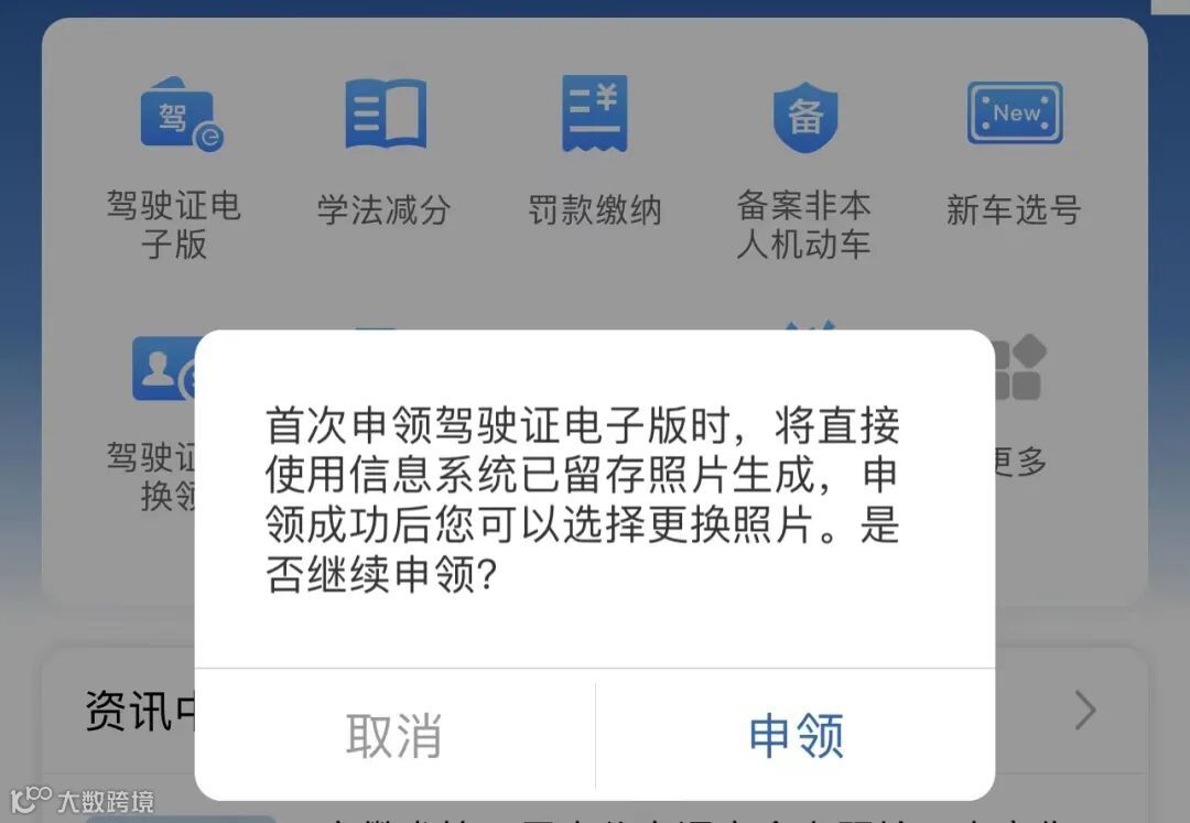 点进驾驶证电子版,这时候APP会提醒用户将会使用信息系统留存的照片,点申领即可。
