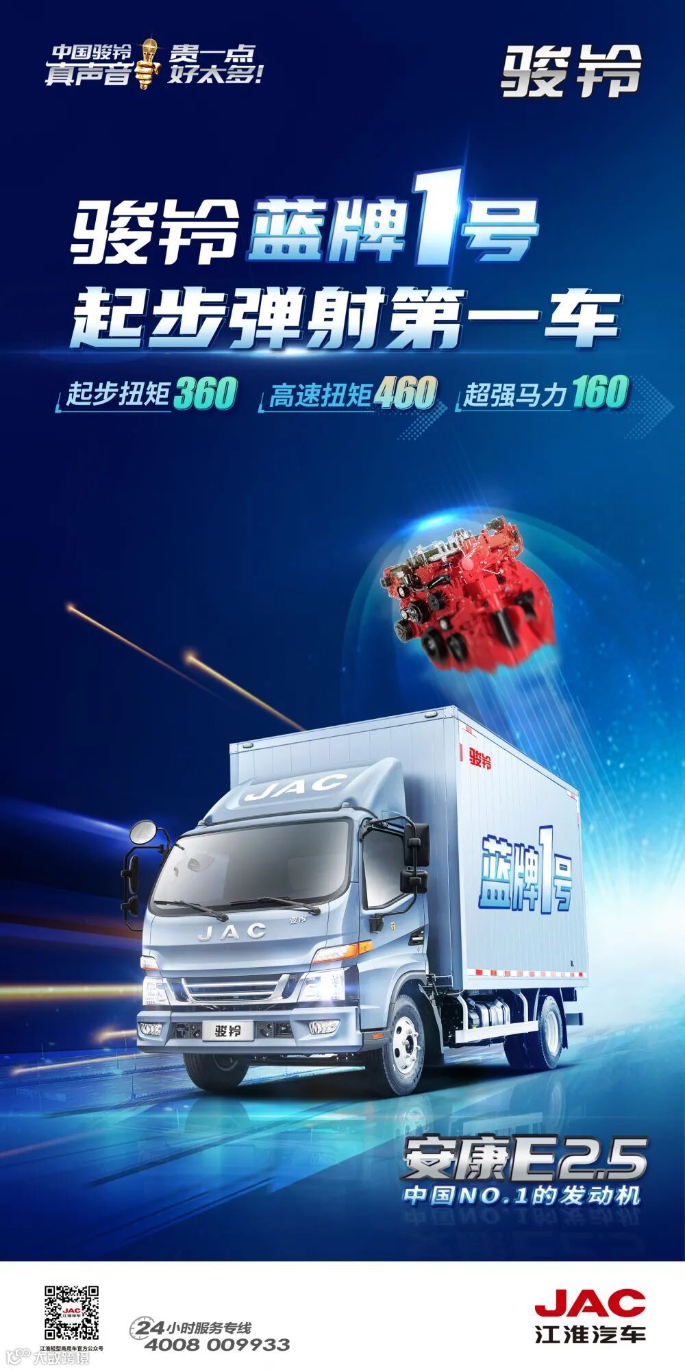 导读:新政急先锋 骏铃蓝牌1号起步扭矩360 一脚油门弹射起步新政黄金2.5L排放 当之无愧“蓝”一号