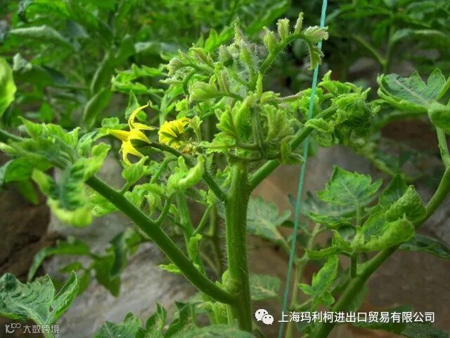 过量蘸瓜或点花药浓度过大,造成激素中毒,也会致使顶叶变黄、僵硬。