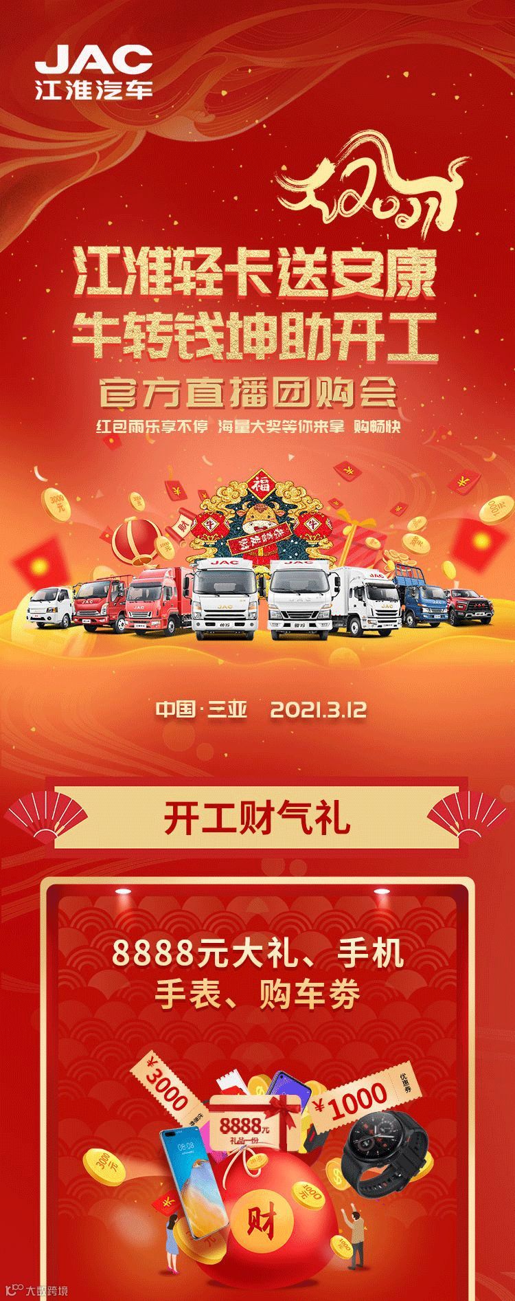 导读:江淮轻卡送安康,牛转钱坤助开工!官方直播团购会倒计时1天