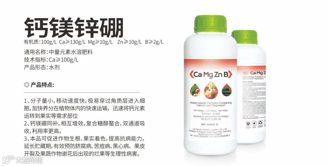 1、16中元素同补:内含氮、磷、钾、钙、镁、硼、铁、锌等16种大中微量元素,提高作物对多种元素的吸收和利用,避免元素之间的拮抗作用,提高果实硬度和营养。