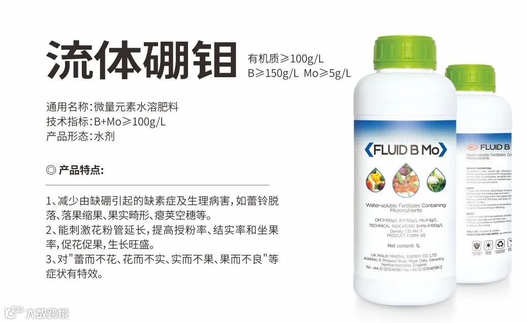 能促进雄性花生殖器的发育,促进花粉的形成和花粉管的伸长,保花保果,提高座果率。缺硼出现蕾而不花,花而不实,实而不正,叶片特小。