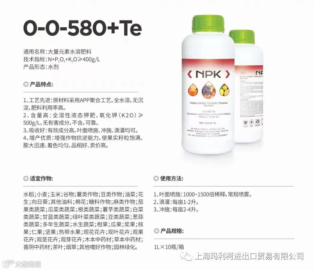 1、滴灌/冲施:稀释200-300倍,亩用量5-10公斤;