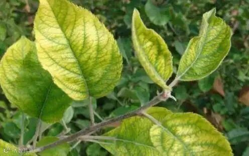 缺铁失绿先顶端,果树林木最严重,