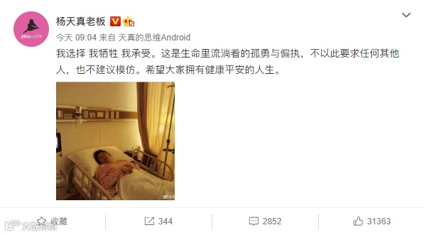 刚做完切胃手术,就返回工作岗位的杨天真,除了让人敬佩,也让人深思——