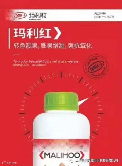 膨果转色期:玛利柯大量元素高钾型配合含腐植酸膨果型15天/次,叶面喷施磷酸二氢钾配合玛利红7天/次;快速膨果,美果壮果,增甜上色。