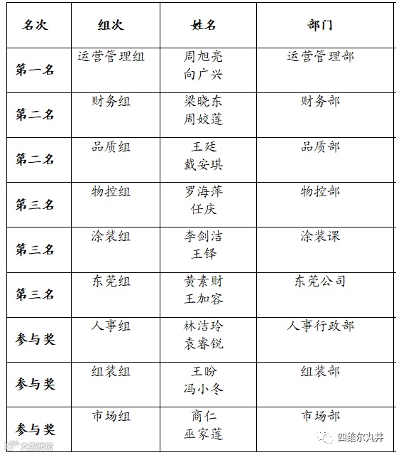 通过此次竞赛活动,从第一、二名小组中抽取运营管理部周旭亮、财务部梁晓东、品质部王廷代表公司参加6月15日鸿图安全知识竞赛。