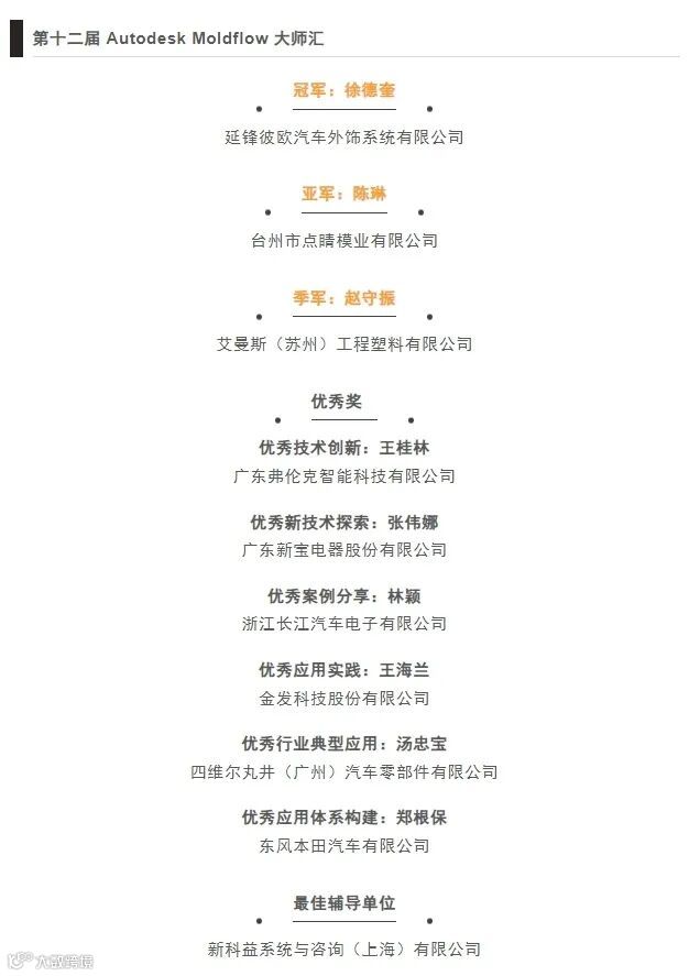 四维尔丸井获得Autodesk Moldflow先进制造技术峰会暨第十二届大师汇优秀行业典型应用奖