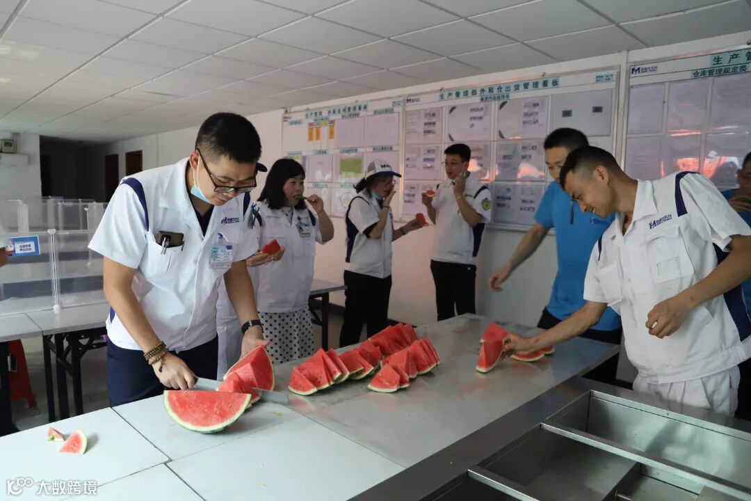 7月12日下午,甘有维副总经理、罗妍芳财务总监、杨锦三制造总监、彭松生管总监、工会主席欧志军、副主席杨桂萍,带着清凉饮品以及消暑西瓜,到高温作业车间对员工进行慰问,为高温作业岗位的员工送去丝丝“清凉”。代表公司向坚守在一线的员工送上问候和关怀,感谢他们不畏酷暑保证工作有序运行。