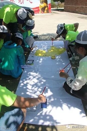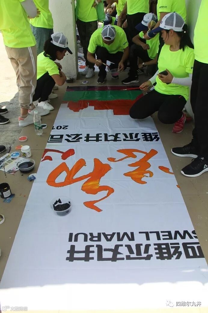为再次提升团队组员的相互协作、团结性,教练又安排了一项作画活动。每个小组随机派人领取所要作的画、颜料、涂笔,在规定的时间内完成。按提交完成的顺序依次计入不等的得分。每个小组抽取的画都只是一整幅带有公司LOGO的本次拓展主题活动宣传画中的一部分,等每个团队的残画作画完毕后,将拼凑、还原成原本的图画。所有准备工作完毕后,每个小队紧张有序的分配着小组成员的任务,争取在最短的时间内完成。经过一番忙碌,各个小队依次完成了作画,拼凑成一幅美丽的画卷!当看到完成的作品时,大家都为这美丽的画卷欢呼雀跃!开心、兴奋、快乐洋溢在每个人的脸庞!