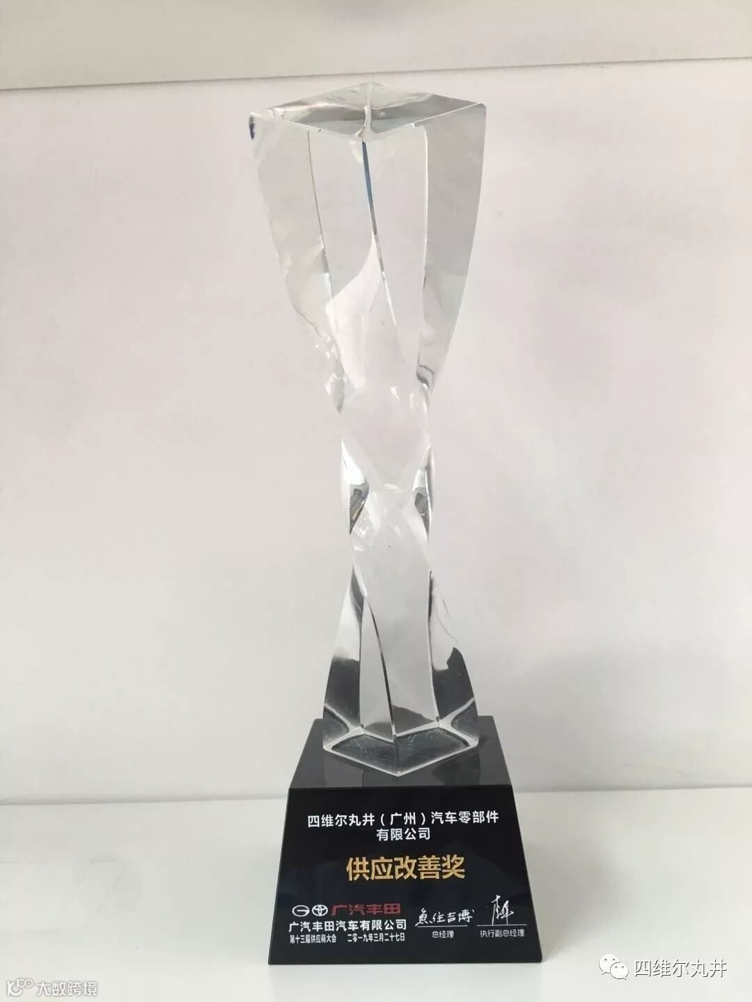 2019年3月27日,四维尔丸井(广州)汽车零部件有限公司在广汽丰田举办的2018年度供应商大会上,分别获得了“供应改善奖”、“品质协力奖”。