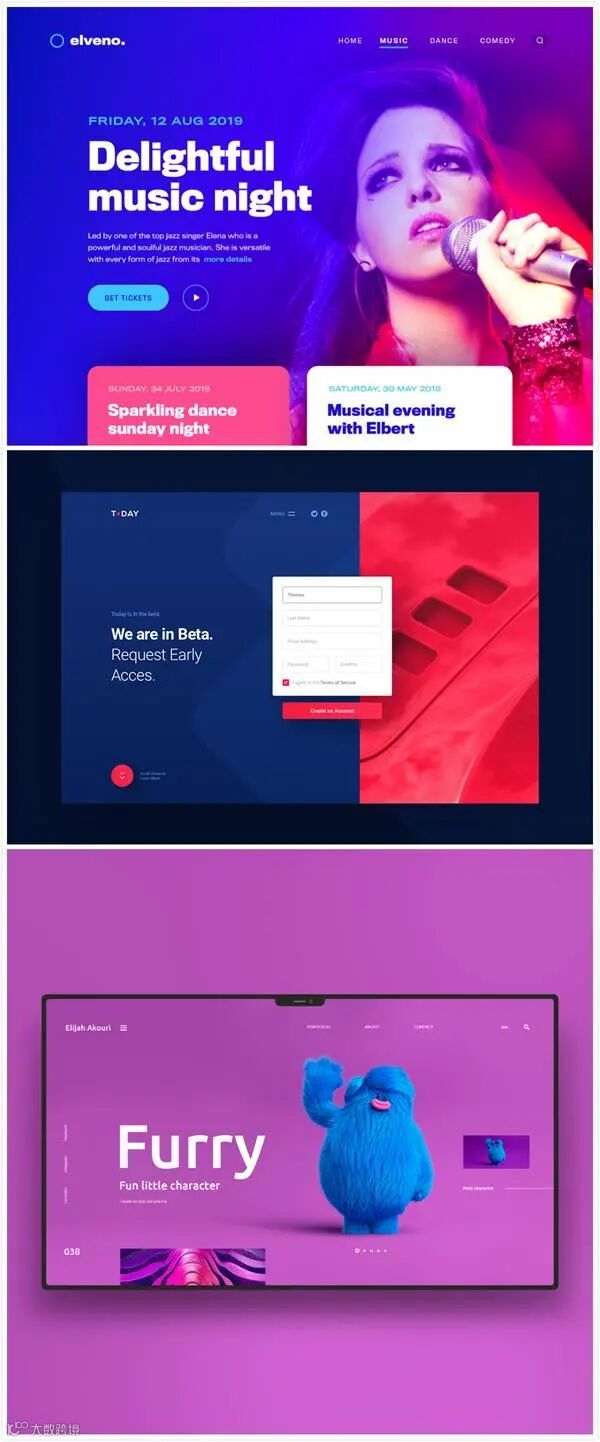 如图所示,整体视觉层次感丰富、有跳跃性,但同时也很舒服、和谐。