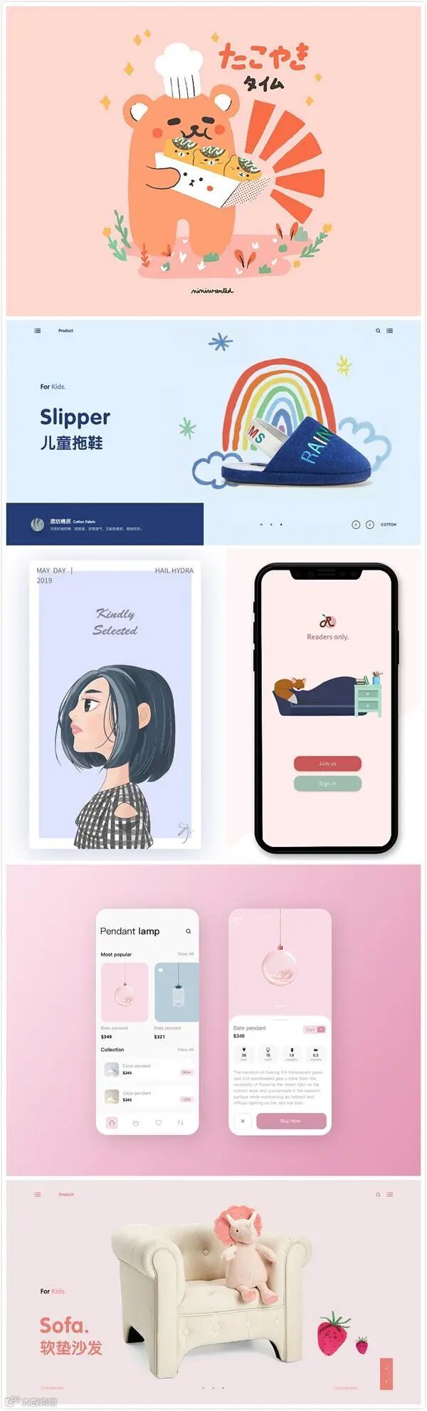 如案例中所示,不管是同类色还是互补色的配色方式,都能将色彩本身的视觉属性发挥得淋漓尽致,这也是亮色调作品的一个特点。
