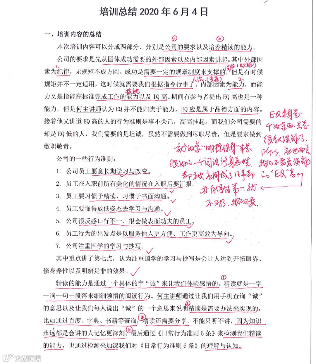 以下的分享,是一位新入职的员工(仅仅入职当天)培训后写出来的总结,供各位老员工参考,很值得向我们的新同事学习。