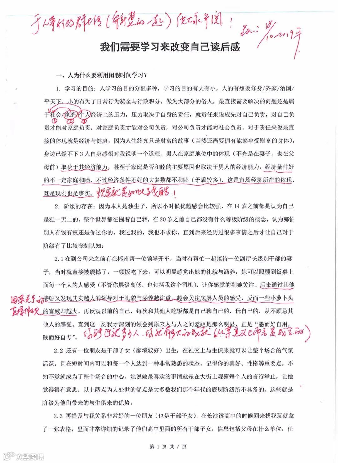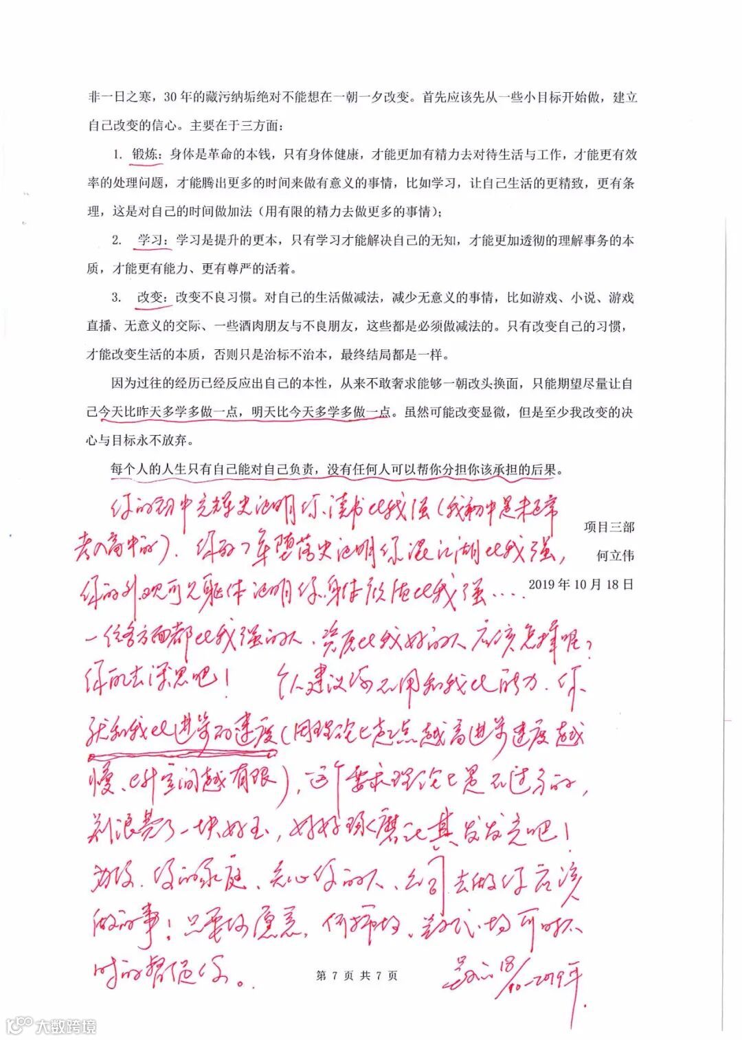原项目三部的同事何*伟,通过学习后,曾经对自己进行了较为全面的深度反思。是否又可以重新再读一读曾深刻反省过的“自己”了?