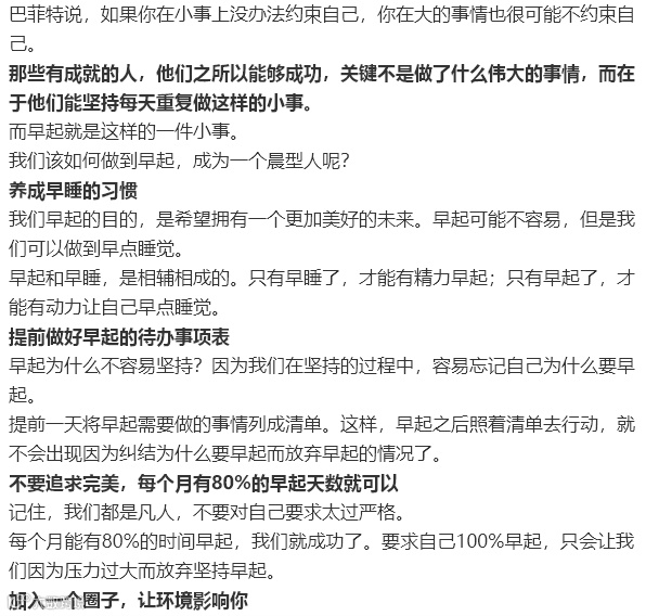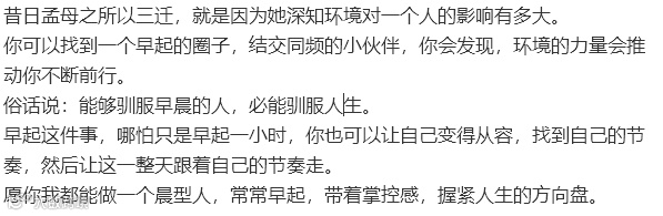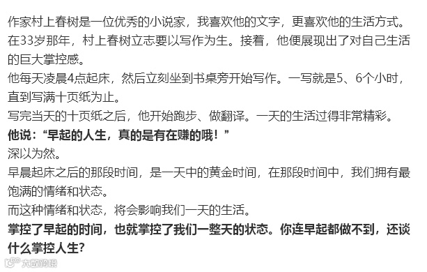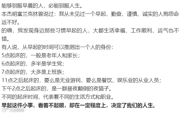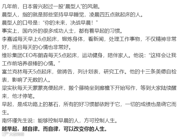 导读:早起这件小事,看着不起眼,却在一定程度上,决定了我们的人生。