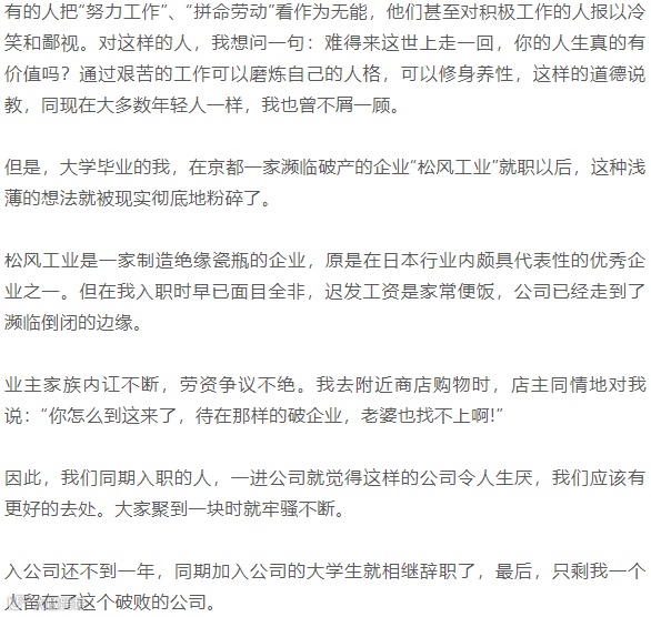 敢于说这样的话的人,不是为了装样子给别人看,而是真的热爱工作,有强烈的“问题意识”。只有这样的人,才有这种魄力。