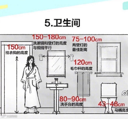 洗漱镜和壁灯的高度(与视线平行) ---- 150-180cm