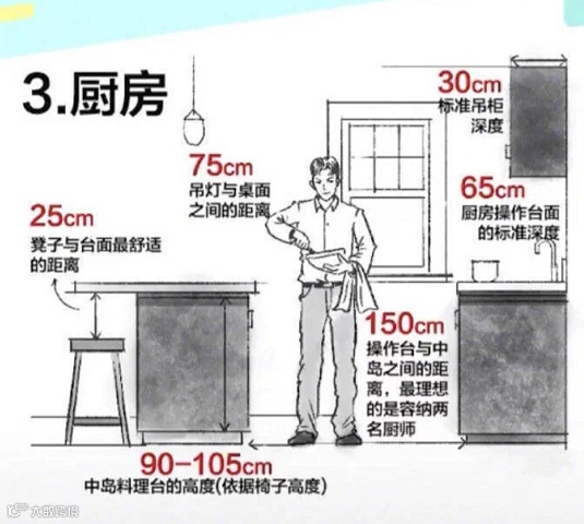 料理台依据椅子的高度 ---- 90-105cm