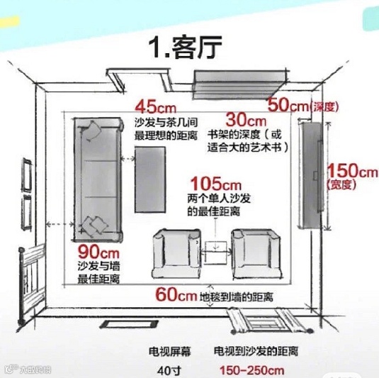 两个单人沙发的最佳距离 ---- 105cm