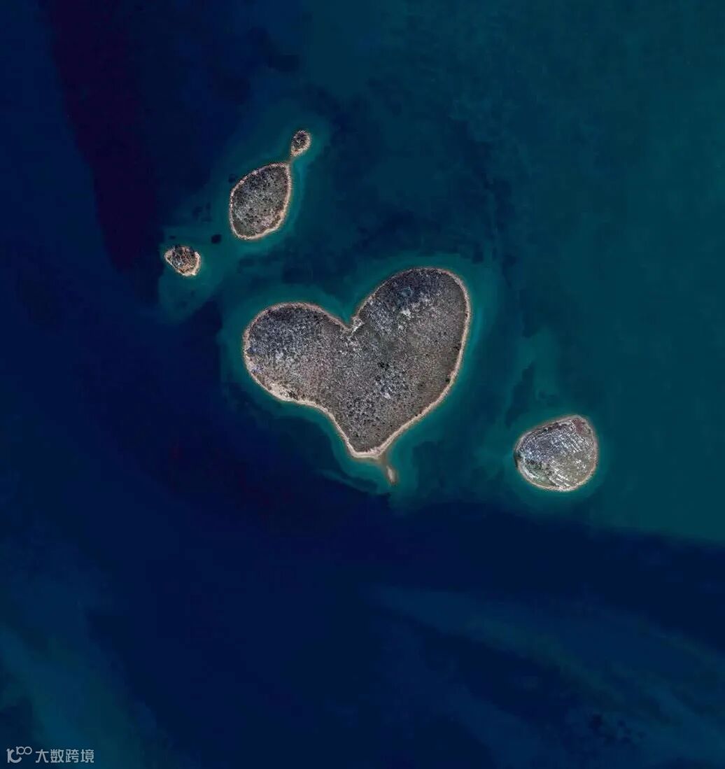 图中中心位置是加勒斯恩杰克岛,俗称 “情人岛”,位于克罗地亚海岸,自然呈现出心形形状。