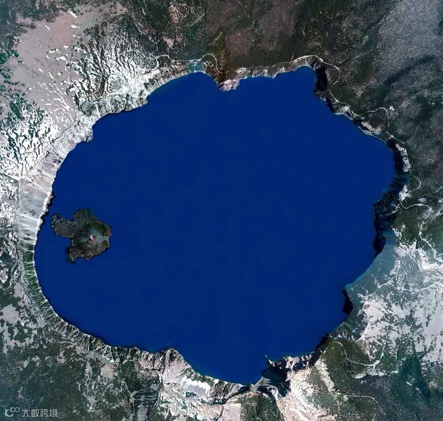 火山口湖,位于美国俄勒冈州克拉马斯堡,这片蓝得令人心悸的湖水坐落在火山口的位置,形成于7700 多年前的火山崩塌。由于这里没有其他河流注入和流出,湖水蒸发后只能依靠雨雪补充。湖水深 592 米,是美国最深的湖。